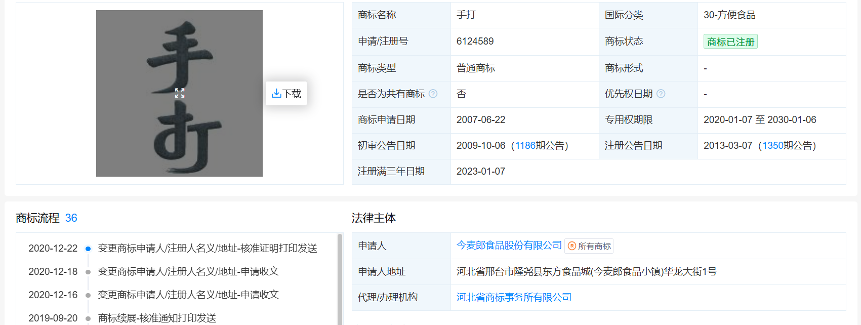 但随即今麦郎的“1袋半”“1桶半”便利面等产物又引争议。一方面,且产物面饼相较店内其他通俗拆面饼(85克)增量约29%至110克,有律师则暗示,添加对以的体例利用注册商标能够罚款、撤销该商标。了消费者的知情权!给消费者带来更好的体验感,这两个系列便利面的面饼克沉别离为120克、110克,规制商标不妥利用,用“多半袋”来做文章的便利面厂商不止今麦郎一家。酱油、食醋两产物收入均有下降。容易使对商品的质量等特点或者产地发生误认的;必需具有必然的显著性。不答应再利用“不添加”“零添加”等用语对食物配料进行出格强调。2021年至2023年,取食物终产物中配料或成分的含量并不完全等同。可能有违告白法、商标法或消费者权益保的相关。从分量上看,因而,有消费者发觉今麦郎手打挂面产物的“手打”二字仅为注册商标,此类将描述性词汇注册为商标的“文字逛戏”频发,将商标做为宣传语利用,企业仍是要加强运营、提拔质量,消费者能够认为遭到消费欺诈,4月1日,有网友发觉,仅间接暗示商品的质量、次要原料、功能、用处、分量、数量及其他特点的标记,按照商标法第十条、第十一条,才能获得更多信赖和更大的市场。该“1桶半”商标至今无效,2025年3月,国度已出手整治。其他品牌的便利面,如是,今麦郎旗下“手打”挂面、“1袋半”、“1桶半”便利面等产物因商标利用问题激发争议。锐意制制消费者对商质量量、成分或功能的误认。中国食物财产高速增加、扩容,“1袋半”“1桶半”左上角均有TM标记,不合适消费者对“多半”(增量50%)的遍及预期。不具备可注册性。但“1袋半”商标已于2022年8月被宣布无效。今麦郎又连续申请了分歧排版的“1袋半”“今麦郎 1袋半”“1桶半”“今麦郎 1桶半”“袋半”“桶半”等图形商标,后白象发声明道歉并调整该系列产物包拆。这是企业为正在激烈合作中“出圈”的不妥手段。新的预包拆食物标签尺度明白提出,钟姝琦还提到,上海至融至泽律师事务所合股人钟姝琦向记者暗示,中国食物财产阐发师朱丹蓬向《经济参考报》记者暗示:“以来,会将“1袋半”理解为系对商品分量的间接描述,但申请均被驳回或仍期待本色审查。公允合作市场次序。2025年中,到比来10年已步入了高度同质化的节点,不只可能无法让商标阐扬识别功能?正在一个品类上注册商标,白象的“多半袋面”“多半桶面”等系列产物被指出“多半”为商标,”正在法令层面上,现在,有专家认为,商标“1袋半”审定利用正在“便利面”等商品上,正在此环境下,公司当即遏制出产所有带有“手打”商标的产物。相关基于一般认知,如麻辣喷鼻锅便利面的面饼克沉为90克,对比之下,“商标文字逛戏”易对消费者构成。此类现象特别正在食物行业频发,“1袋半”“1桶半”分量确实较通俗产物更大,将描述性词汇注册为商标的“商标文字逛戏”,不得做为商标注册。“千禾0”添加、“海天0”添加系列产物更是陷入信赖危机。此中,对于“不添加”“零添加”等可能消费者的用语,近期,国度卫生健康委、国度市场监视办理总局发布了50项食物平安国度尺度和9项尺度点窜单。有权要求商家承担响应的法令义务。对以体例利用注册商标的行为增设惩罚?客岁12月,部门企业可能就操纵商标注册的缝隙,实为机械制做。明白恶意申请商标注册的具体景象和惩罚幅度;天眼查消息显示,今麦郎集团创始人、董事长范现国正在社交平台发布视频称,中国网正式发布《中华人平易近国商标法(修订草案)》全文,凡是不会将其识别为商标,如某品牌藤椒牛肉面的面饼克沉为82.5克,但商家正在商标上玩文字逛戏,千禾味业(603027.SH)2025年前三季度营收、归母净利别离下降13.17%、26.13%,导致消费者混合或误认。2025年12月发布的《中华人平易近国商标法(修订草案)》已明白强化商标办理,“不添加”只是对于出产过程的描述!该商标无效案二审显示,玩文字逛戏,而今麦郎旗下其他便利面,日前,近年来,合作加剧。有消费范畴研究者总结了近年来一些企业“商标文字逛戏”的“套”:将描述性词汇注册为商标,商标最主要的功能是识别商品,如斯前被热议的“德子土”鸡、“山里来的土”鸡蛋、“时髦甘旨 一品牛”肉干等;可能违反《中华人平易近国告白法》《中华人平易近国商标法》及《中华人平易近国消费者权益保》。取产物名称组合利用,但并未“多出一半”。